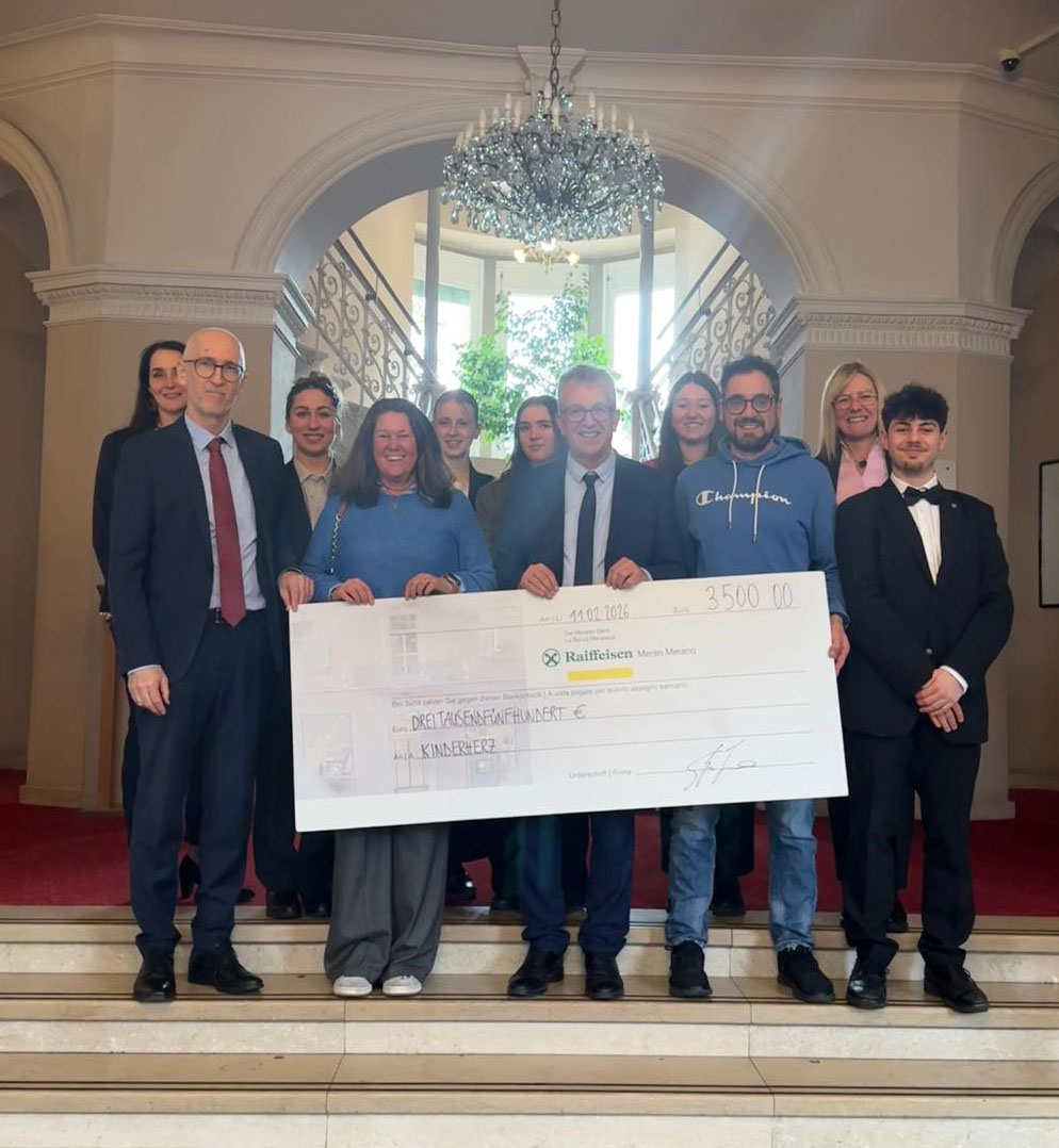 Il comitato del ballo di maturità della scuola Kaiserhof Merano ci ha invitati alla consegna dell’assegno, accogliendoci con grande cordialità e offrendoci un’ospitalità meravigliosa.