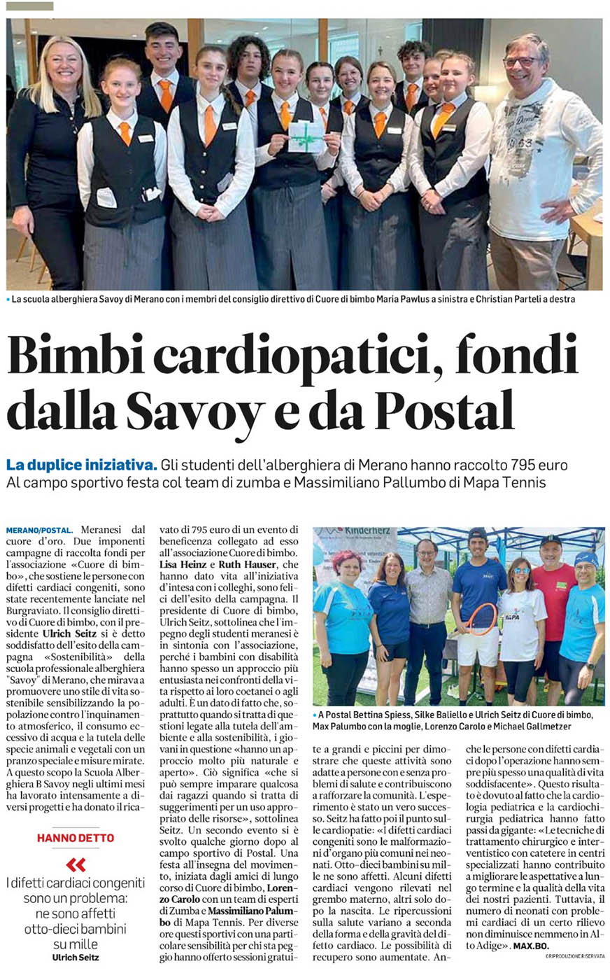 Bimbi cardiopatici, fondi dalla Savoy e da Postal